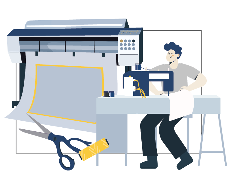Seterusnya pihak kami akan siapkan tempahan anda melalui proses cetakan, jahitan dan QC.